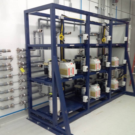 This customer needed to install 9 large vacuum pumps in a small area. Each one pulls out on slides for easy maintenance.